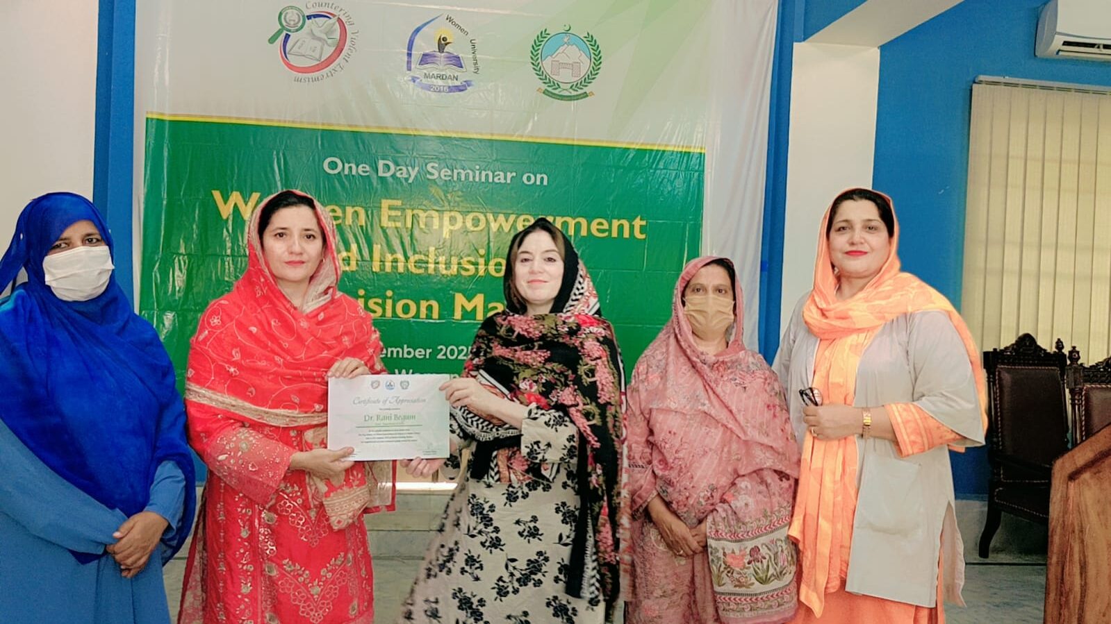A one-day seminar on “Women Empowerment and Inclusion in Decision Making” was conducted on September 23, 2025, at 10:30 a.m. by the Office of the Chief Proctor, Women University Mardan. The event was held under the kind guidance of the Worthy Vice Chancellor, Dr. Razia Sultana, whose encouragement and support remain pivotal in promoting academic and awareness initiatives across the University.